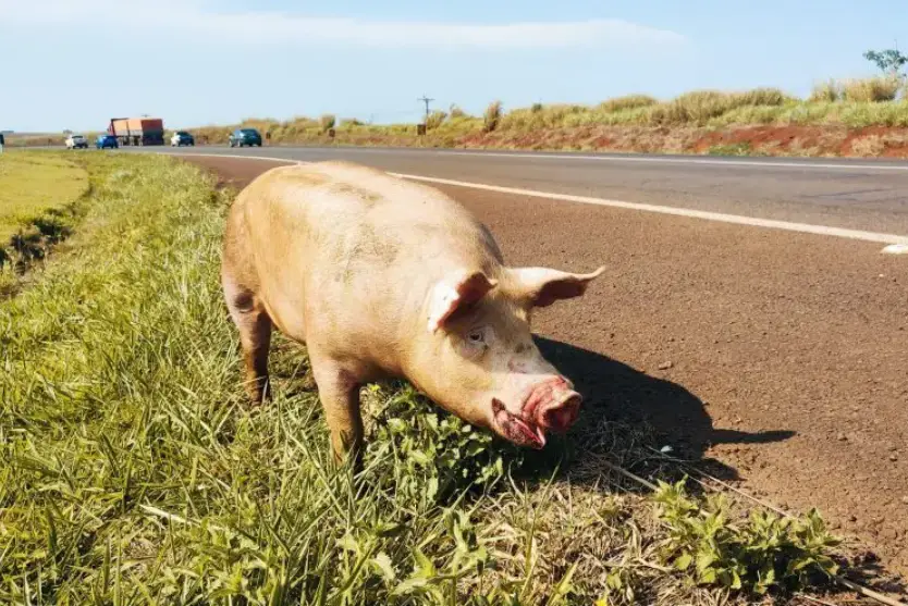 Paraná 29/10/2024 às 21:41 Porco que provavelmente caiu de caminhão é encontrado perambulando na BR-163