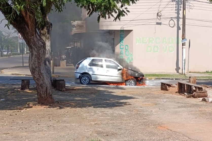 Paraná 19/08/2024 às 10:29 Carro pega fogo na região central de Moreira Sales após pane elétrica no motor
