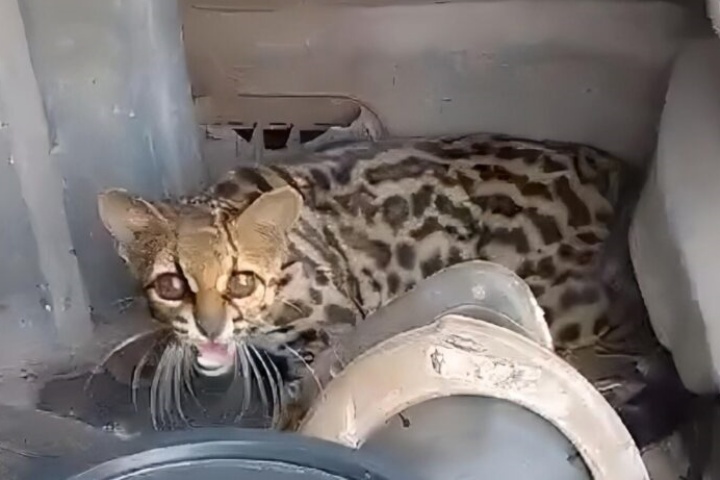Paraná 16/08/2024 às 18:48 Filhote de jaguatirica é encontrada dentro de porta-malas de carro às margens do Rio Ivaí