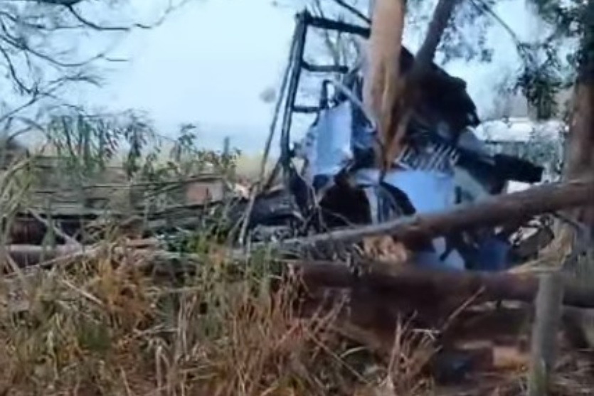 Paraná 09/08/2024 às 09:41 Caminhão com lenha vai parar entre árvores às margens da PR-576, em Tapira