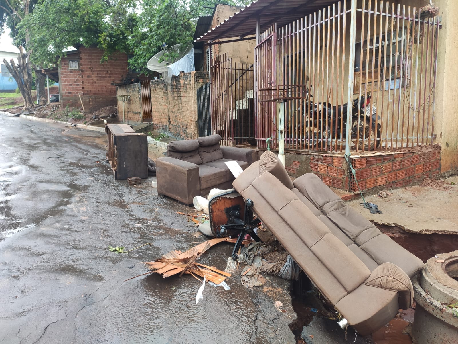 Chuva invade casas no Parque Industrial e Assistência Social pede doações de colchões
