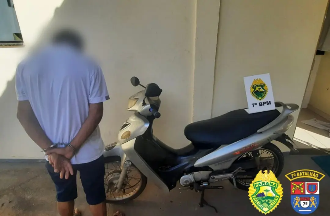Um homem com mandado de prisão expedido pela Justiça foi localizado pela Polícia Militar (PM) e preso em Cidade Gaúcha. Ele também estava com uma motoneta com irregularidades.