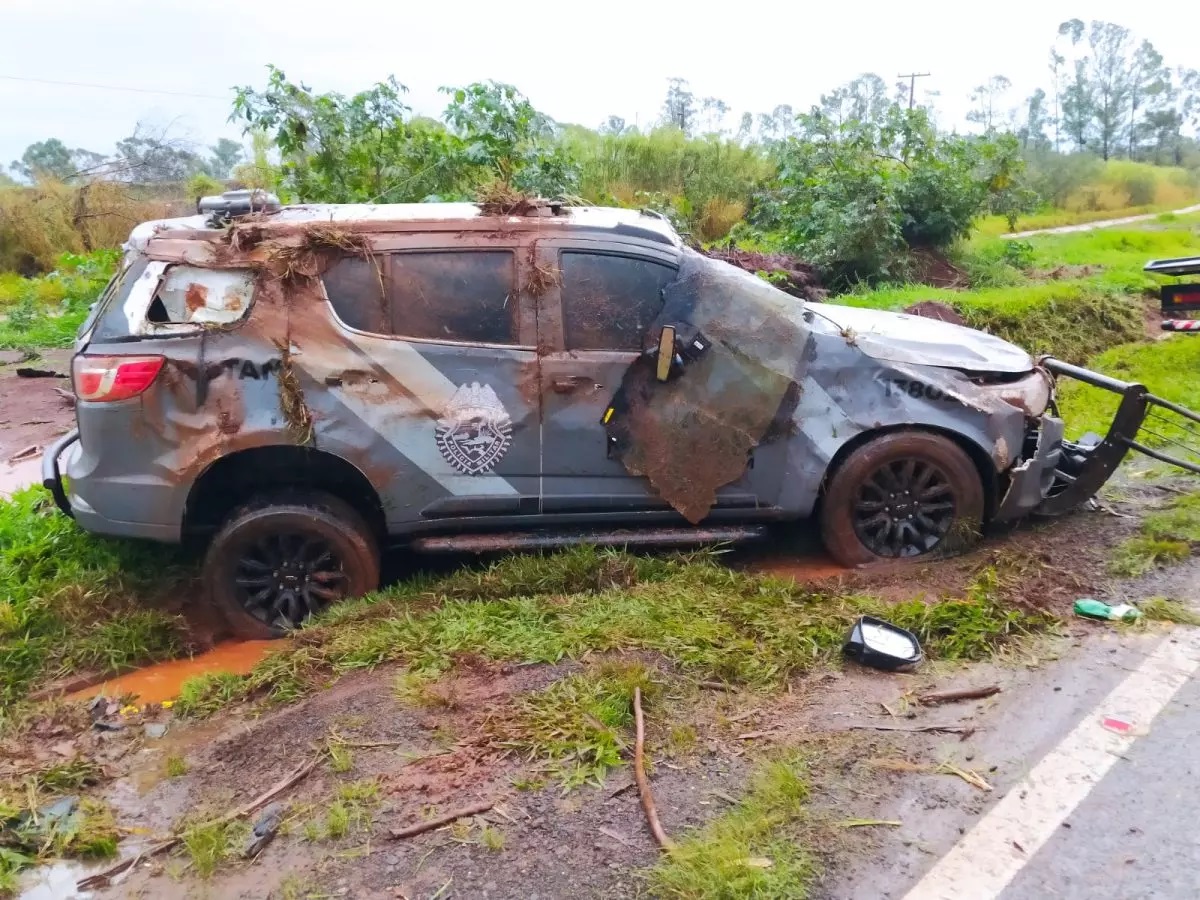 Uma viatura da Polícia Militar capotou na PR-170 em Rolândia, na tarde desta quinta-feira (6), durante uma operação policial da Rotam. O motorista perdeu o controle do veículo na rodovia e três policiais ficaram feridos com necessidade de atendimento do Siate.