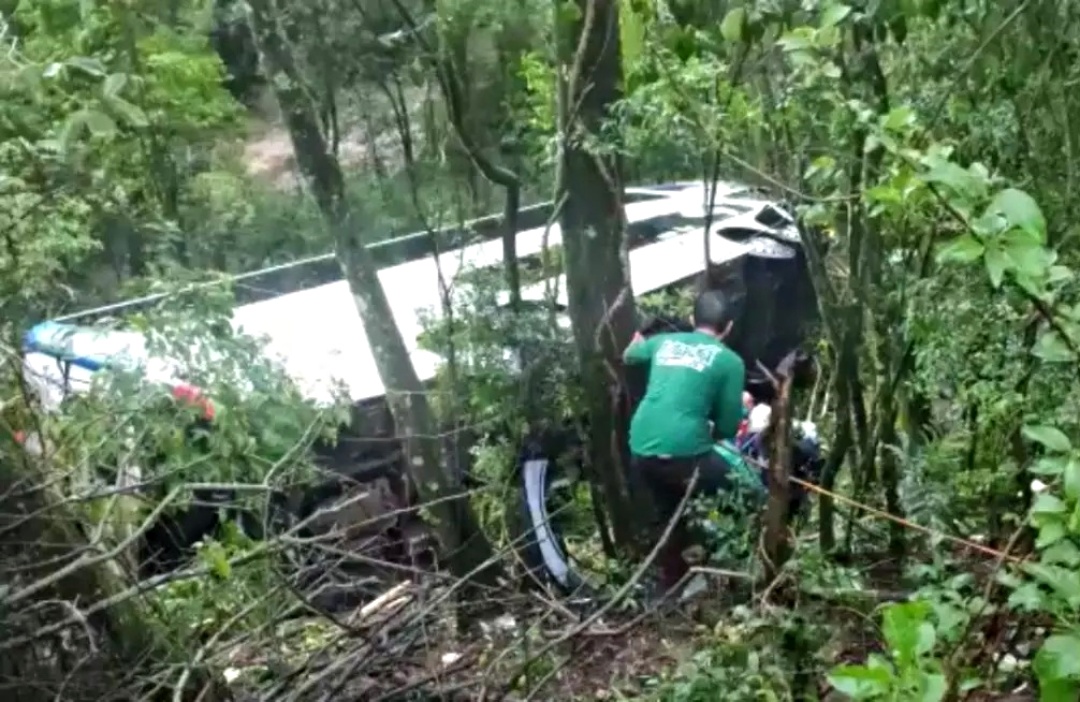 Nas imagens gravadas pela Polícia Rodoviária Federal (PRF), que atende a ocorrência, é possível ter noção da gravidade da situação. No vídeo, os dois veículos aparecem em ribanceiras de cerca de 10 metros. O caminhão e o ônibus ficaram completamente destruídos.