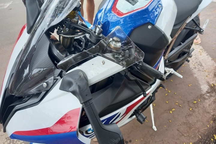 A moto, uma BMW Esportiva, sem placa, foi recolhida ao pátio do 25º BPM (Batalhão de Polícia Militar) por estar sem documentação regularizada. A PM informou que o Civic também tinha irregularidades.