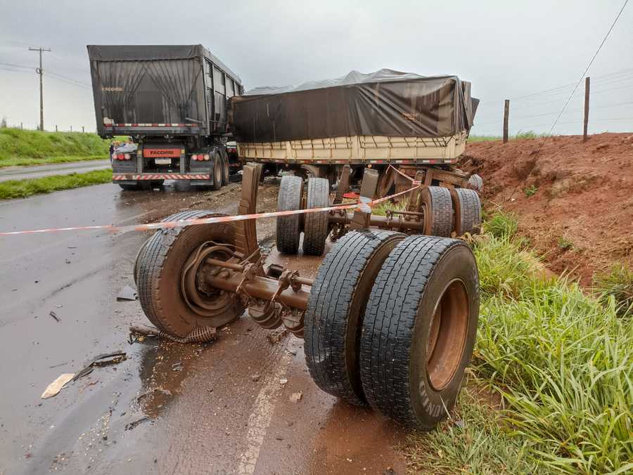 Carreta com placa de Umuarama se envolve em colisão violenta no Mato Grosso do Sul