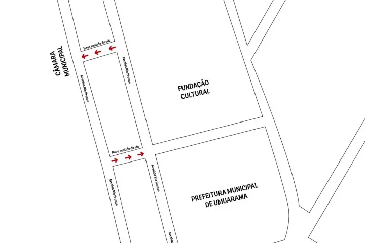 A Prefeitura Municipal de Umuarama informou uma mudança de sentido em dois pontos da avenida Rio Branco, próximo ao Paço Municipal, que, a partir desta quarta-feira (30), deixam de ser trechos de mão dupla.