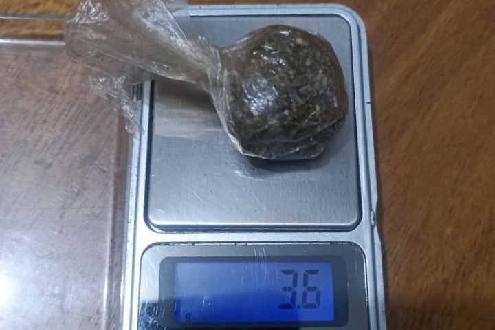 Com ele os policiais também encontraram uma porção de maconha que posteriormente foi pesada e apresentou resultado de 3,6 gramas.