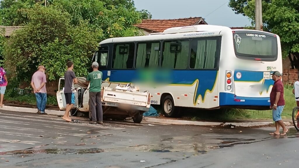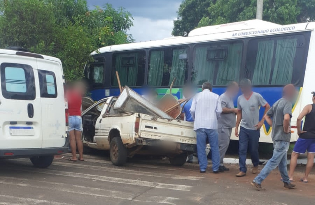 Pessoa fica ferida com gravidade após acidente entre picape e ônibus em Tuneiras do Oeste