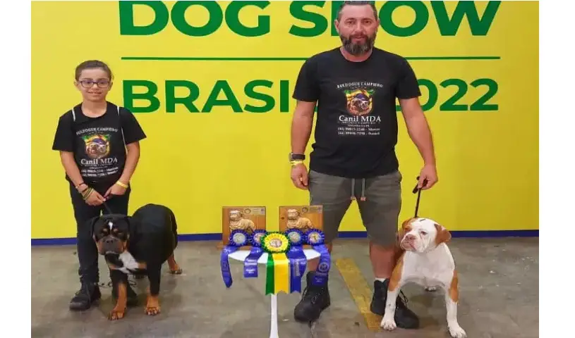 As duas fêmeas da raça Buldogue-campeiro, do Canil MDA Refúgio Campeiro de Umuarama, que participaram da Exposição Mundial de Cães, na Expo Center Norte, em São Paulo, capital, Kalli e Gaia (BK), voltaram para casa com bons resultados.