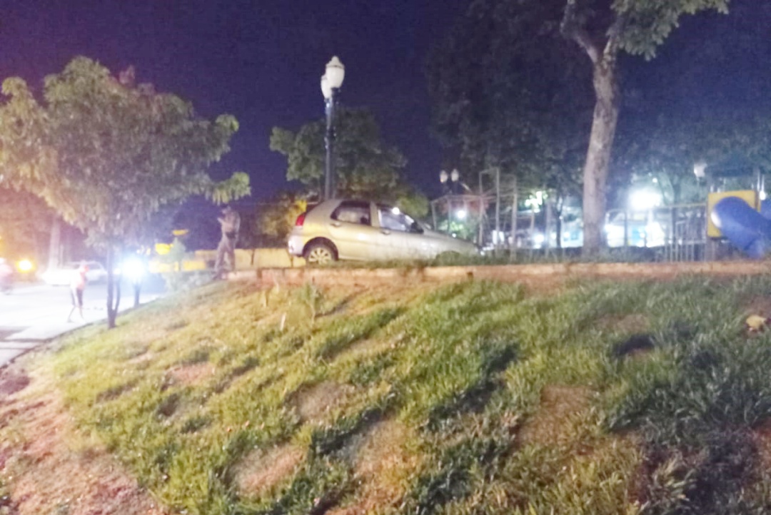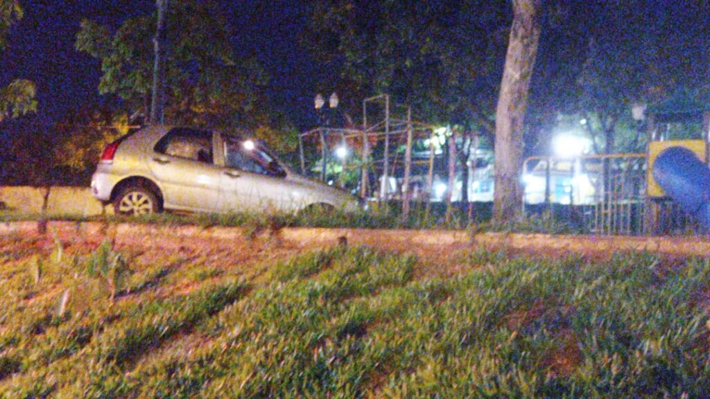 Veículo invade a praça 7 de Setembro e danifica brinquedo do parque infantil
