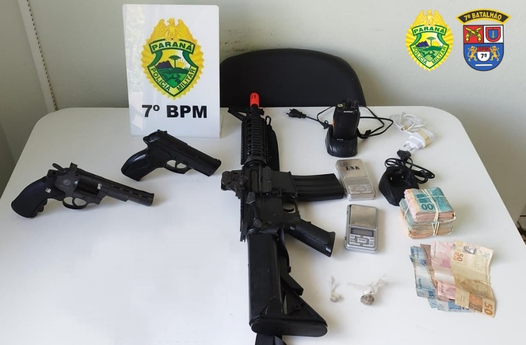 Policiais Militares do 7º BPM realizaram a apreensão de três simulacros de armas em Tapejara. A ação aconteceu de forma conjunta com a equipe Canil da 5ª CIPM de Cianorte, na última terça-feira (13).