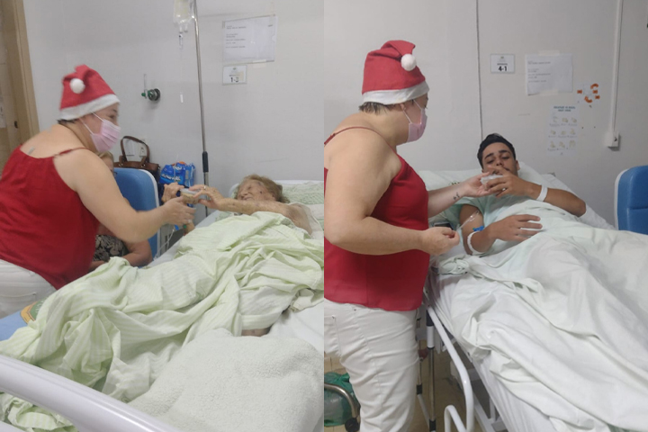 Pacientes e funcionários do Hospital Nossa Senhora Aparecida recebem bolo de pote no Natal
