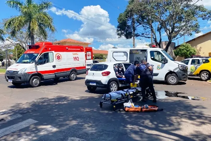 Uma colisão entre uma ambulância e um carro deixou vários feridos na cidade de Goioerê na tarde desta segunda-feira (26). O veículo da saúde levava uma gestante em trabalho de parto.