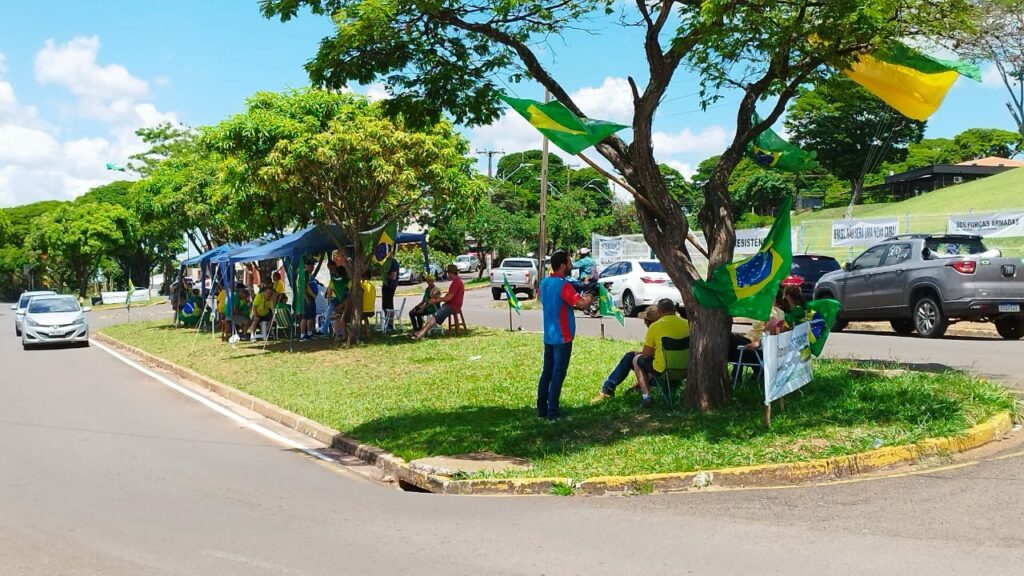 Os manifestantes contrários ao resultado das eleições de outubro deste ano, que elegeu o presidente Luiz Inácio da Silva (PT), por uma margem apertada de votos, permanecem acampados em frente ao Tiro de Guerra 05-012, em Umuarama, nesta quinta-feira (29), mesmo depois da notificação da prefeitura que deu prazo de 24 horas para que o local seja desobstruído.