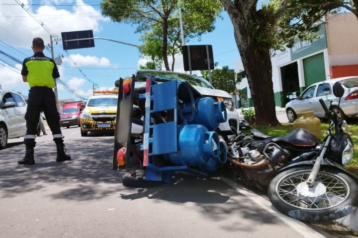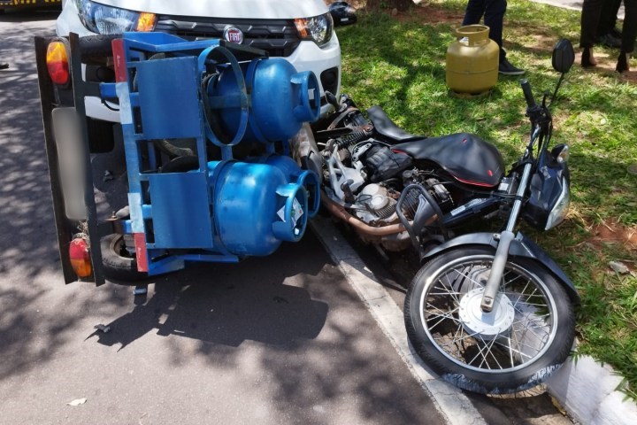 Um acidente registrado no fim da manhã desta quarta-feira (25), deixou o trânsito interrompido em meia pista na avenida Paraná, próximo à praça Miguel Rossafa, em Umuarama. De acordo com as informações, a condutora de um automóvel Fiat Mobi teria atingido a traseira de uma carretinha acoplada à uma motocicleta que transportava botijões de gás.