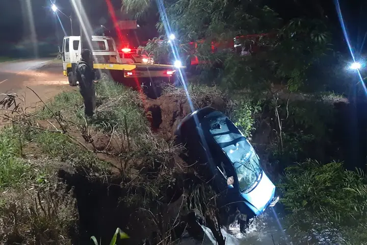 O carro parou dentro do barranco de aproximadamente 5 metros de altura e ficou com o teto completamente submerso na água. O condutor saiu do veículo bastante desorientado e com escoriações pelo corpo, além de um corte no joelho. Ele teve que receber atendimento do Samu (Serviço de Atendimento Móvel de Urgência), que forneceu ao suspeito uma manta térmica para que ele pudesse se aquecer pois estava todo molhado pelo acidente.