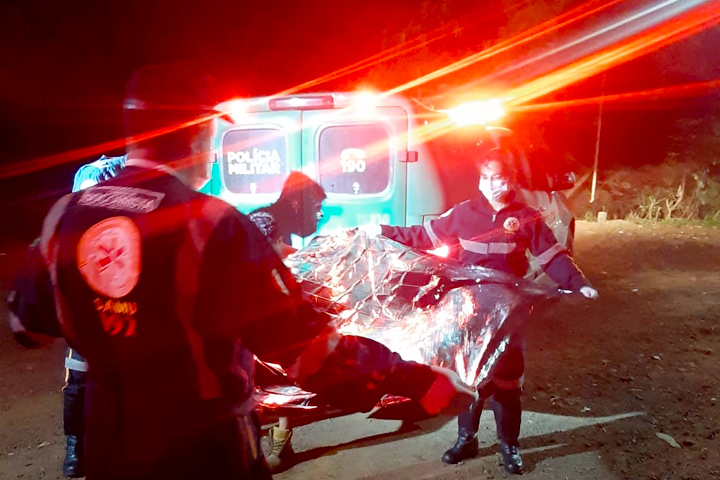 Motorista em fuga da polícia cai dentro de rio e é socorrido com manta térmica, em Goioerê
