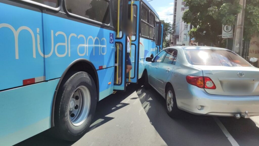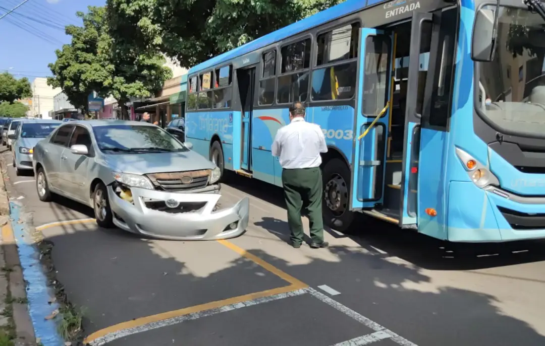 Uma colisão entre um carro e um ônibus do transporte coletivo de Umuarama foi registrada por volta das 15h45 desta quinta-feira (9). O acidente ocorreu nas proximidades da La Belle Cosméticos e ninguém ficou ferido.
