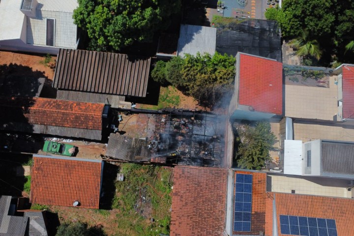 Casa de madeira é totalmente destruída após incêndio na rua Porto Alegre, em Umuarama