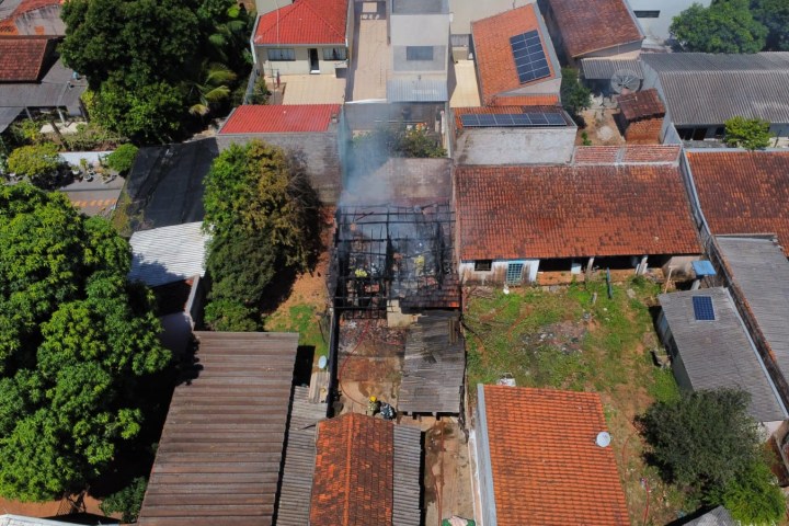 Uma residência construída parcialmente em madeira foi completamente destruída após um incêndio que aconteceu no início da tarde desta quarta-feira (22), na rua Porto Alegre, nas região do Detran de Umuarama.