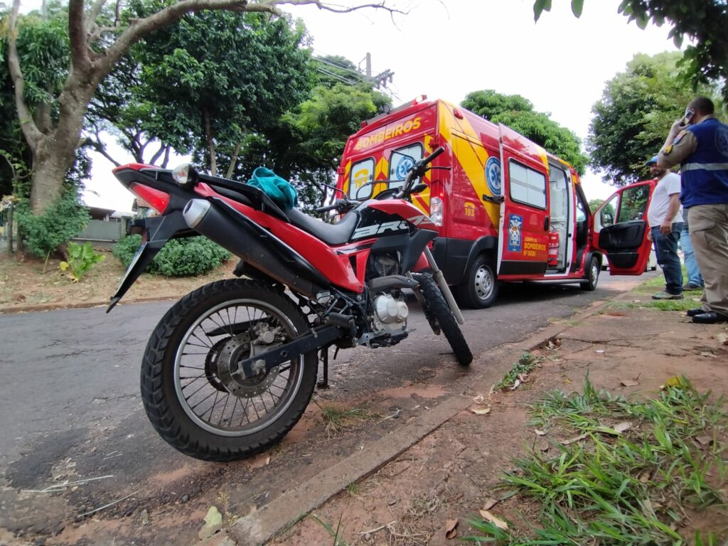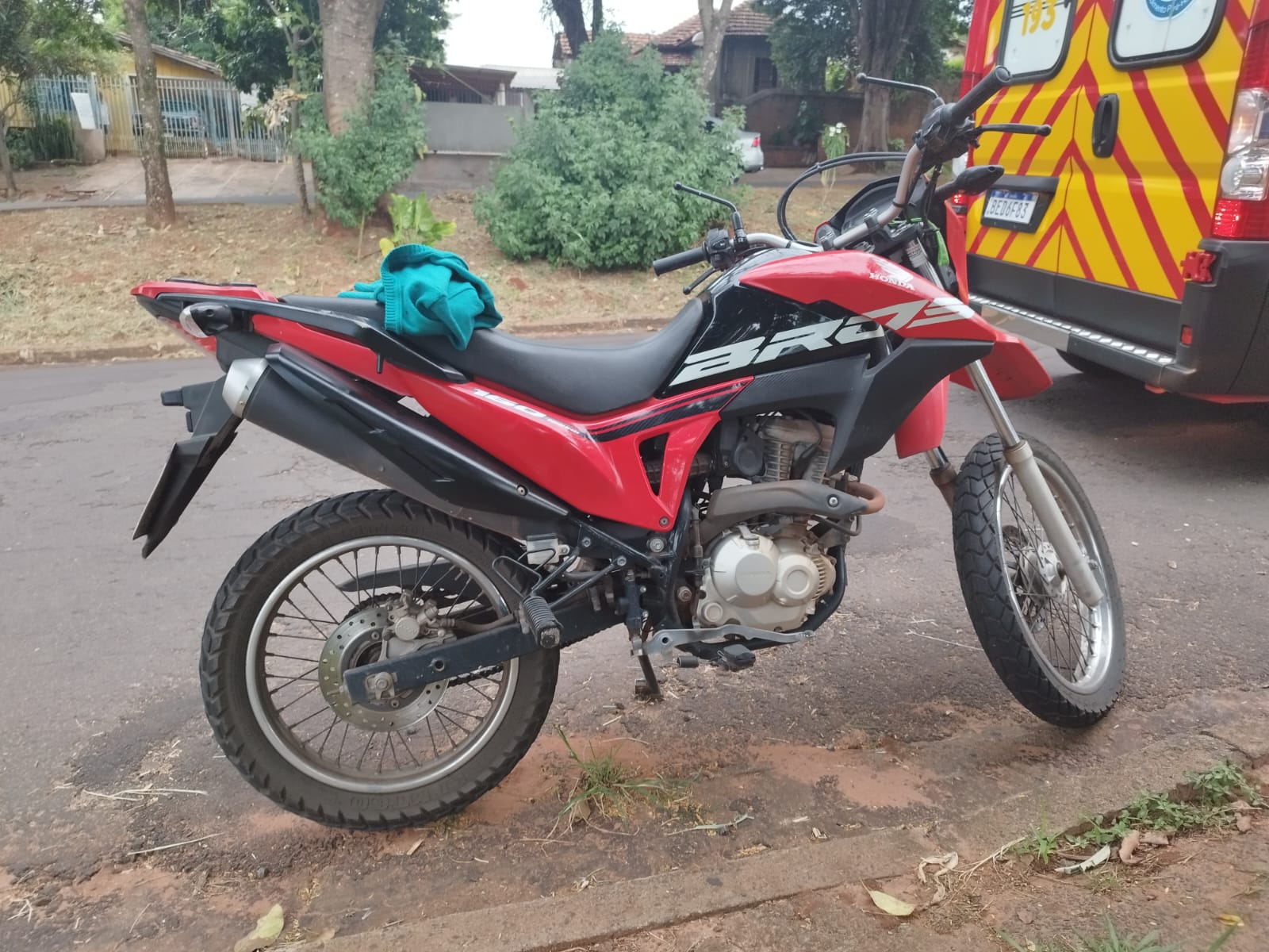 Uma queda de moto foi registrada no final da tarde desta quarta-feira (5) em Umuarama. Três pessoas ficaram feridas: um homem (35 anos), uma mulher (39) e uma criança de 7 anos (filho do casal).