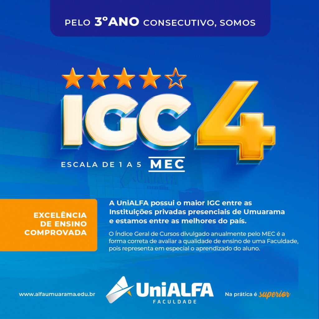 O Índice Geral de Cursos (IGC) é uma forma de avaliar a qualidade do ensino superior no Brasil. Ele leva em consideração critérios como o resultado do Enade, que é uma prova realizada pelos alunos concluintes e que aponta o conhecimento adquirido pelo formando.