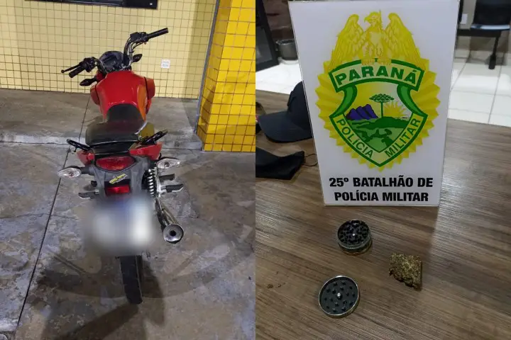 A Polícia Militar (PM) apreendeu a motocicleta de um condutor de 21 anos que estava transitando sem os retrovisores pelas ruas da Zona V de Umuarama, na noite desta quarta-feira (12). Com o rapaz os policiais também encontraram uma porção de maconha.