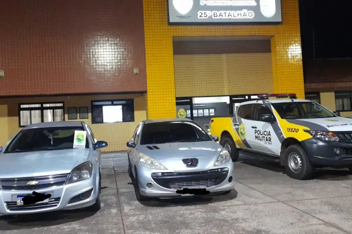 A Polícia Militar apreendeu um Peugeot 207 Passion e um Vectra Hatch na madrugada deste domingo (16), no Parque Residencial Industrial, em Umuarama. As apreensões aconteceram durante uma abordagem ao motorista do Pegeout, de 25 anos, que não possuía CNH (Carteira Nacional de Habilitação). Além disso, o carro tinha débitos.