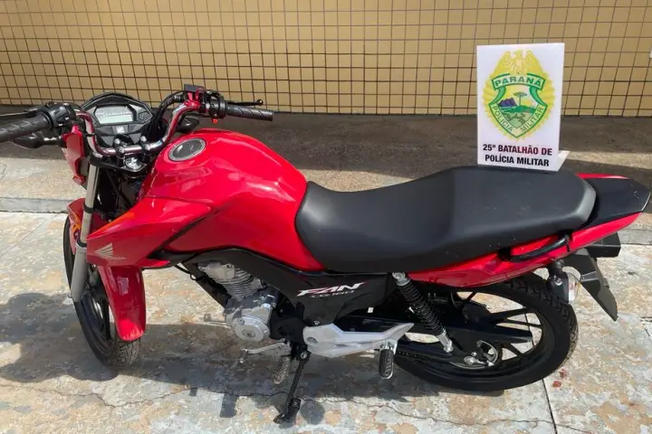 Uma motocicleta Honda CG 160 FAN que havia sido furtada neste sábado (15), no Parque Primeiro de Maio, em Umuarama, foi recuperada pela Polícia Militar antes mesmo da dona da moto perceber o furto.