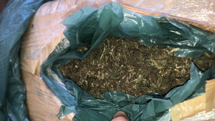 A equipe da PM foi até o local e averiguou a mala, constatando que dentro estavam dois pacotes de maconha. A droga pesou 12,3 quilos.