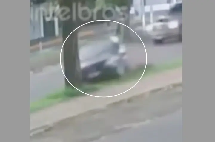 Uma câmera de segurança registou o acidente na avenida Mandacaru, Maringá, no último domingo (30). A colisão entre um carro e uma árvore deixou 6 pessoas feridas. As informações são do Portal EVN.
