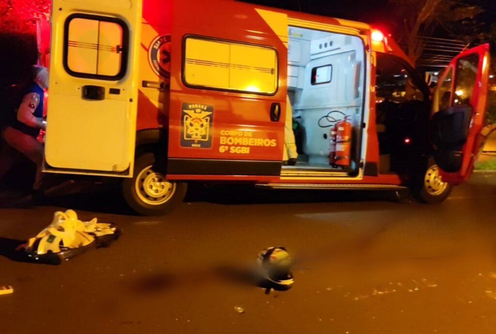 Um motociclista ficou ferido com gravidade na noite desta terça-feira (9) após sofrer um acidente em Umuarama. A situação aconteceu na avenida Goiânia por volta das 20h30 e ele colidiu contra um carro parado.