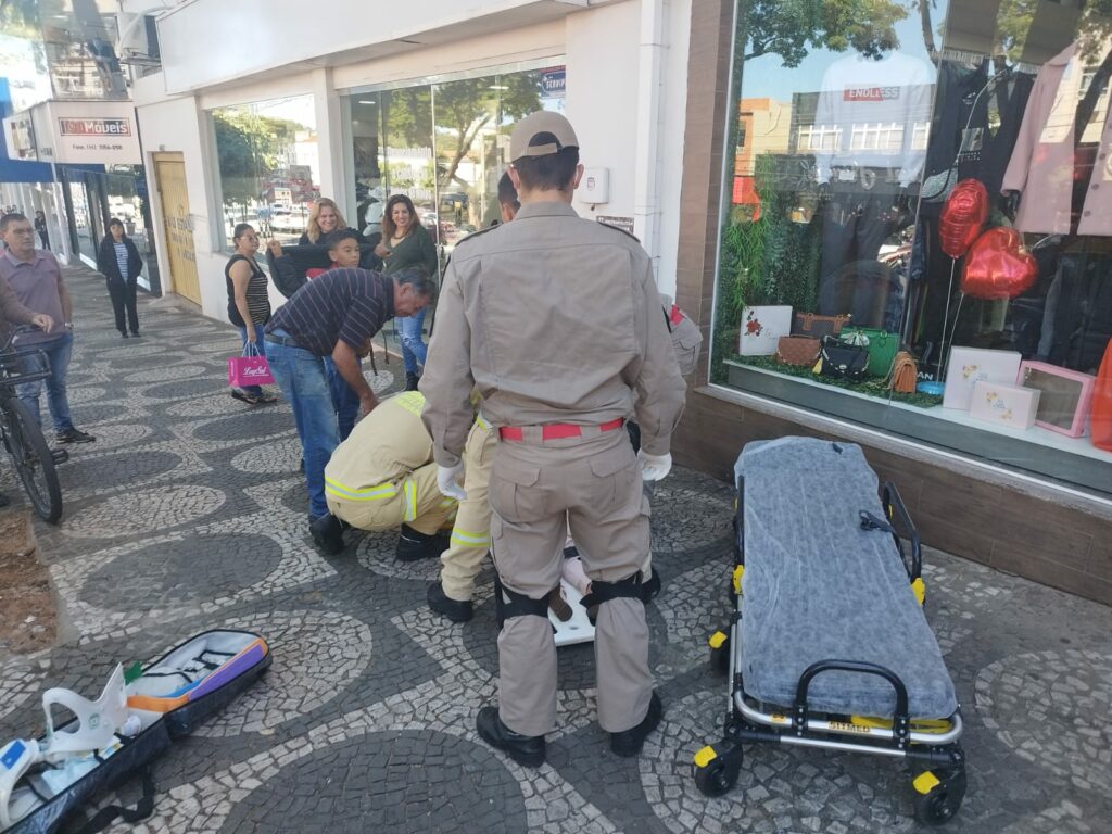Uma idosa de 69 anos precisou ser socorrida por volta das 12h desta terça-feira (16), após uma queda de mesmo nível na Avenida Paraná, no centro comercial de Umuarama.
