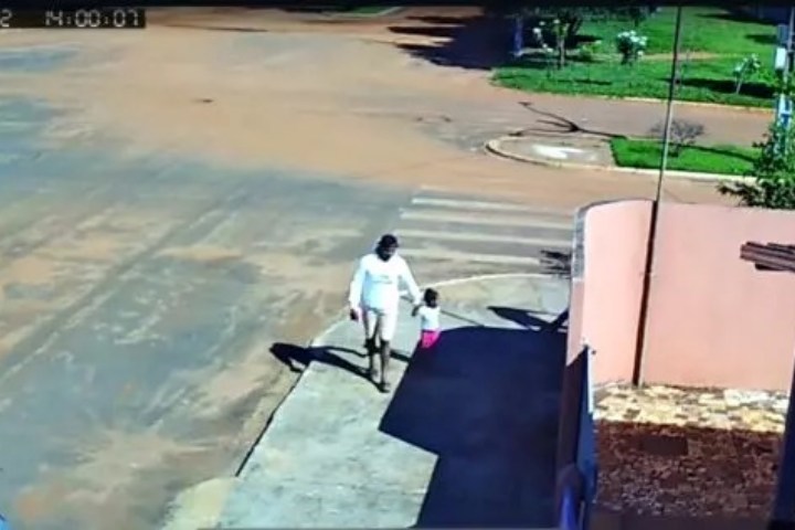 Uma câmera de segurança flagrou o momento que o pai buscou a filha para passear. Nas imagens, é possível ver a menina aparentemente contente em encontrar Nadiro. Ambos se abraçam e conversam antes de saírem em direção ao carro do suspeito.