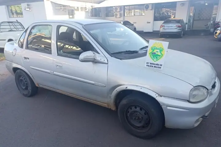 De acordo com a Polícia Militar, o Corsa, ano 2002, foi encontrado estacionado em via pública, durante um patrulhamento policial.