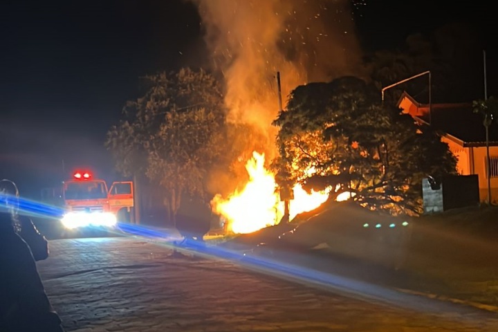 Incêndio destrói carro que estava estacionado em frente à UBS de Iporã