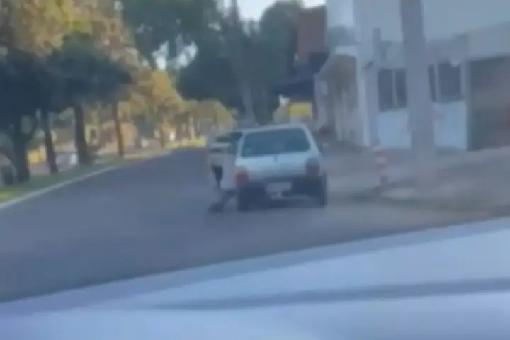 Um motorista ficou com o osso exposto após a porta do seu carro abrir e ele ficar pendurado com a perna esquerda para fora e sendo arrastada pelo asfalto, nesta terça-feira (4), em Maringá.