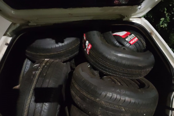 Foi observado que o carro estava carregado com 17 bobinas com 4 pneus cada, totalizando 68 pneus contrabandeados. O veículo foi recolhido e entregue na Receita Federal de Guaíra.
