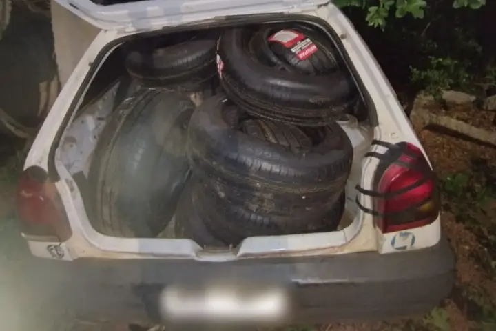 A Polícia Militar (PM) apreendeu, na noite desta sexta-feira (11), um VW Gol que estava lotado com 68 pneus possivelmente de origem paraguaia, que estava abandonado na região próxima ao trevo de entrada do distrito de Guaiporã, em Cafezal do Sul.