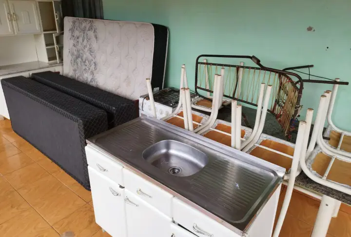 Os itens recuperados são: fogão marca Dako de 4 bocas, um martelo com cabo de madeira, sete seis cadeiras tubulares de cor branca e uma cadeira de varanda, uma mesa de material metálico tubular com tampo em granito, um armário de cozinha, sete portas de cor branca em MDF, um armário de pia de cor branca com seis portas e uma cama de casal box colchão 1,90 x 1,50 com duas bases pretas.