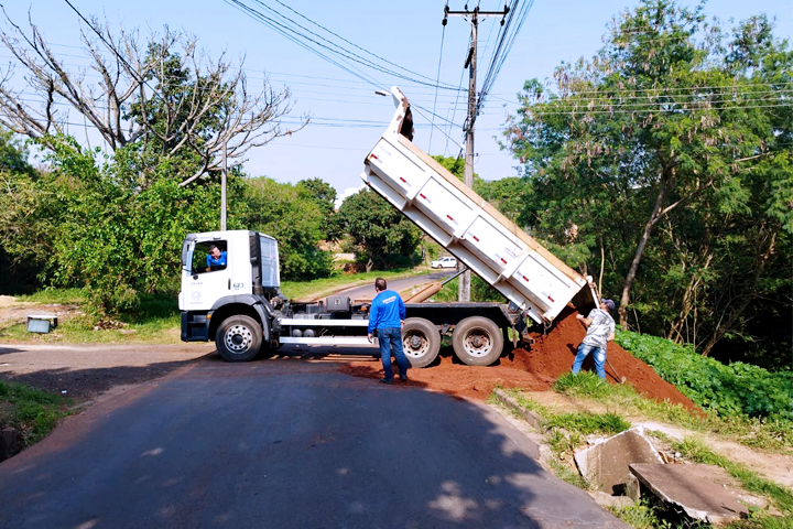 “Foi construída a pequena barragem para conter a erosão numa das cabeceiras da ponte e agora a prefeitura está recompondo o aterro”, divulgou a Prefeitura. A expectativa era de que o trabalho fosse finalizado ainda no período da manhã.