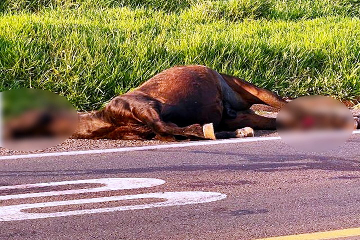 O acidente aconteceu por volta das 6h desta manhã. O portal Goionews apurou que a veículo ocupado pela vítima seguia no sentido a Jaracatiá quando colidiu contra o equino, que atravessava a pista. O condutor do automóvel revelou ao portal que tentou desviar, porém o animal acabou atingindo o cavalo no lado direito.