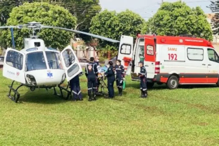 Helicóptero do Samu transfere mulher que sofreu TCE após carro atropelar cavalo em Goioerê