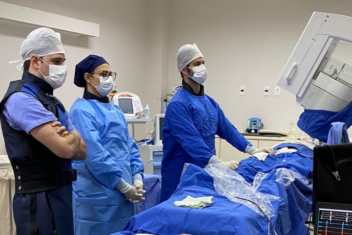 “O procedimento é pouco invasivo. Em vez de realizar uma cirurgia com corte no peito do paciente, utilizamos uma punção na veia da virilha, conhecida como veia femoral, para posicionar os cateteres dentro do coração. Dentro do órgão, esses cateteres conseguem mapear e localizar os pontos de arritmia, realizando testes para restaurar o ritmo cardíaco normal enquanto cauterizam os pontos que geram a arritmia no paciente”, explicou Silva.
