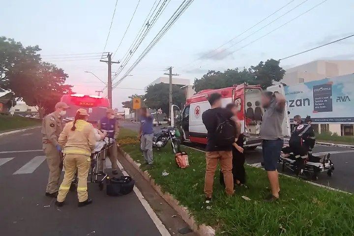 A motociclista seguia em direção ao centro da cidade. A pedestre atravessava na faixa quando foi atingida. Equipes do Samu e do Corpo de Bombeiros (Siate) foram acionadas para atendimento.