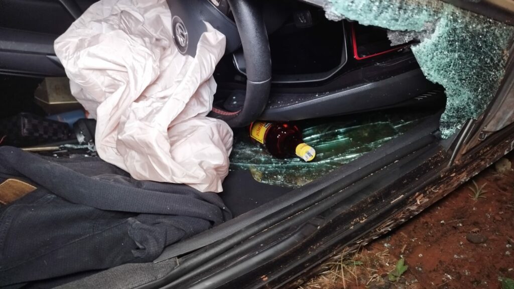 Quanto à presença de bebida alcoólica no interior do veículo Virtus, tal informação foi confirmada por J.V.R.D.S., todavia salientou que estavam lacradas.