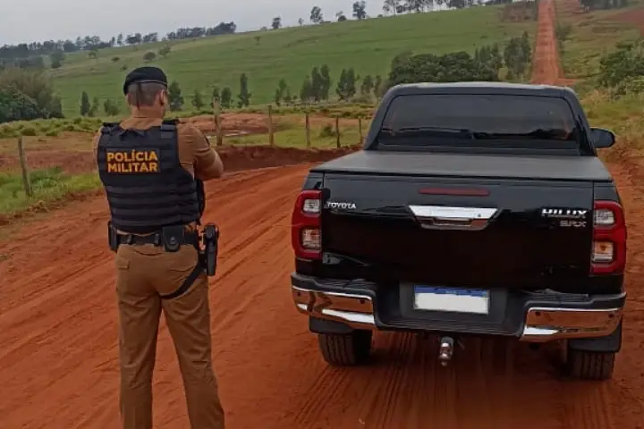 A Polícia Militar recuperou, na manhã desta quinta-feira (5), um veículo Toyota/Hilux que havia sido furtado na noite anterior em Pérola. Segundo informações da PM, o veículo foi encontrado após denúncias anônimas, entre as localidades de Pérola e Xambrê.