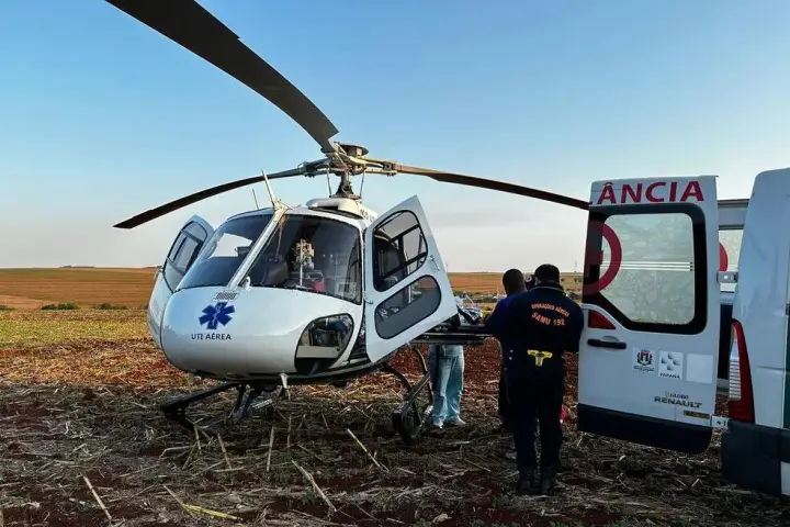O Samu deslocou um helicóptero para atendimento da criança, que foi intubada e encaminhada para atendimento hospitalar.