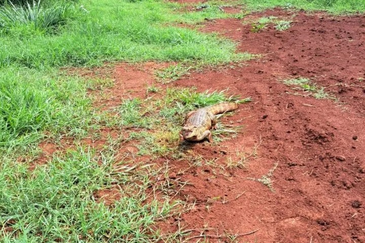 Um jacaré com aproximadamente 1,60 metro foi resgatado de um buraco onde ele havia caído no município de Jaguapitã, na região de Maringá. De acordo com a Defesa Civil do município – que realizou o resgate – o réptil foi descoberto por um morador que acionou as equipes.